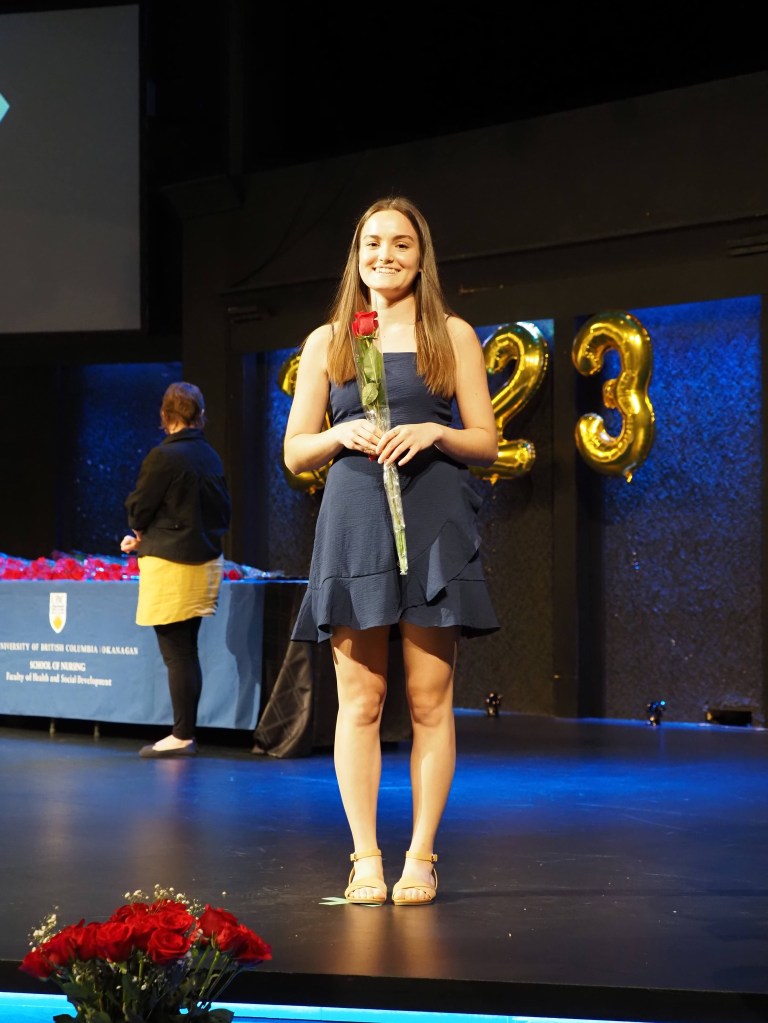 The nurses host a second event, ‘Class of 2023 Rose Ceremony’ held on Saturday. This ceremony is more personal for sure. One recurring theme was the joy of the first pay cheque and no longer ‘working for free’. Amazingly most of the graduates are already working and many have passed their professional RN exam as well 👏🏻 ! Cailyn’s nursing bestie Alanna joined Cailyn on stage for the group photo. Both nurses are working at Kelowna General on 3E (medical / surgical ward).