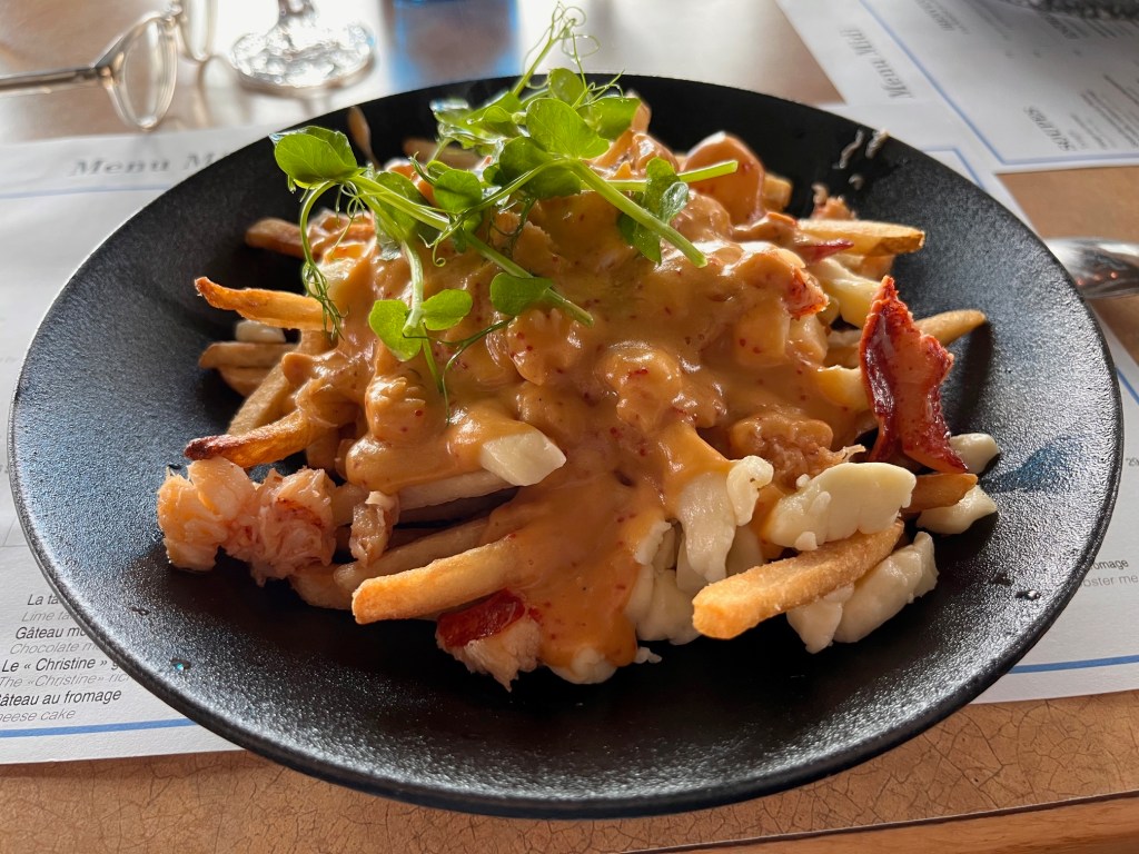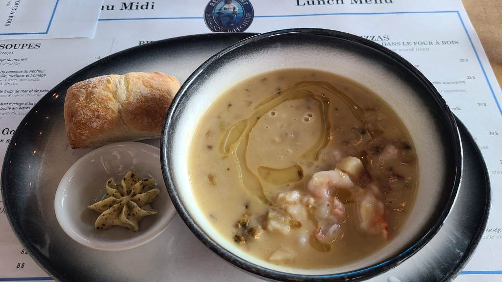 We arrived in Perce around lunchtime. It was busy due to cruise ship visitors-still not as busy as Saint Jean Batiste though. Val has a work colleague who is from Gaspe and highly recommended Restaurant La Maison du Pecheur. And we were not disappointed. Our meal has set the standard for this trip: YUM!