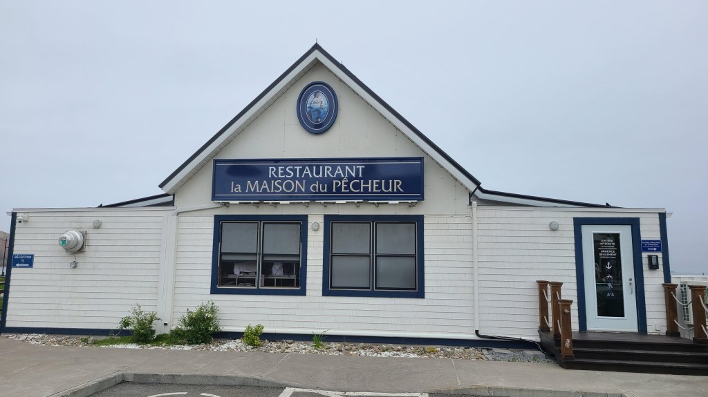 On the way to Forillon, on St. Jean Baptiste day, Perce was packed. There were lineups outside every pub and restaurant, so we traveled a bit further to the town of Gaspe for a great meal at Brise Bise.