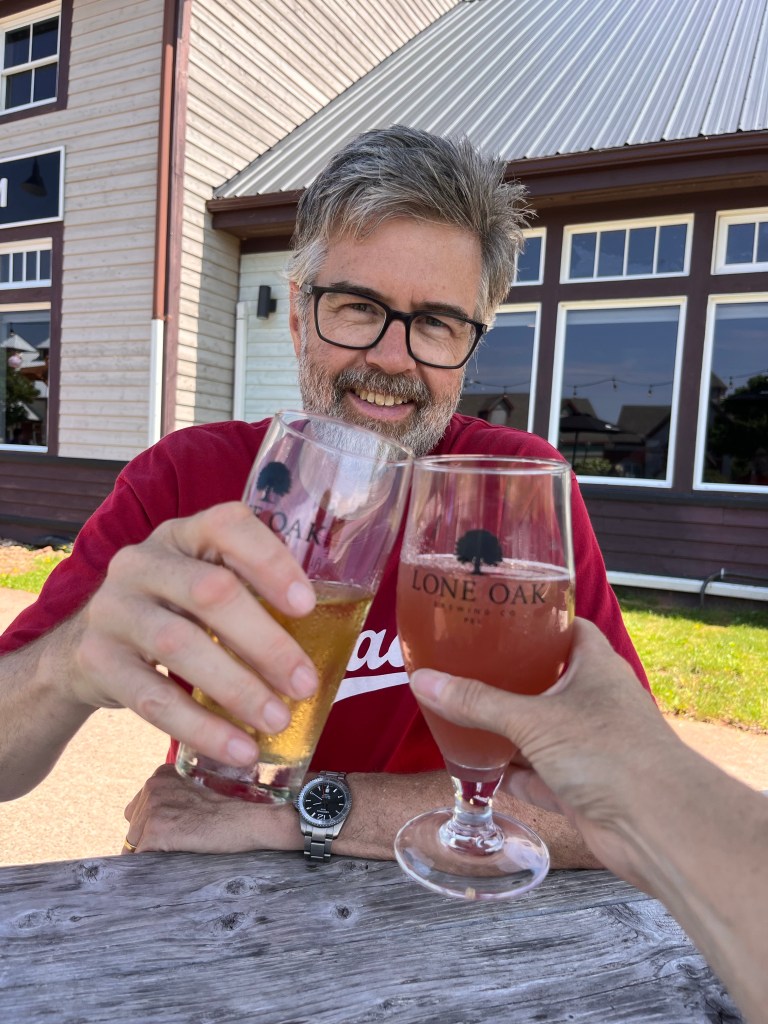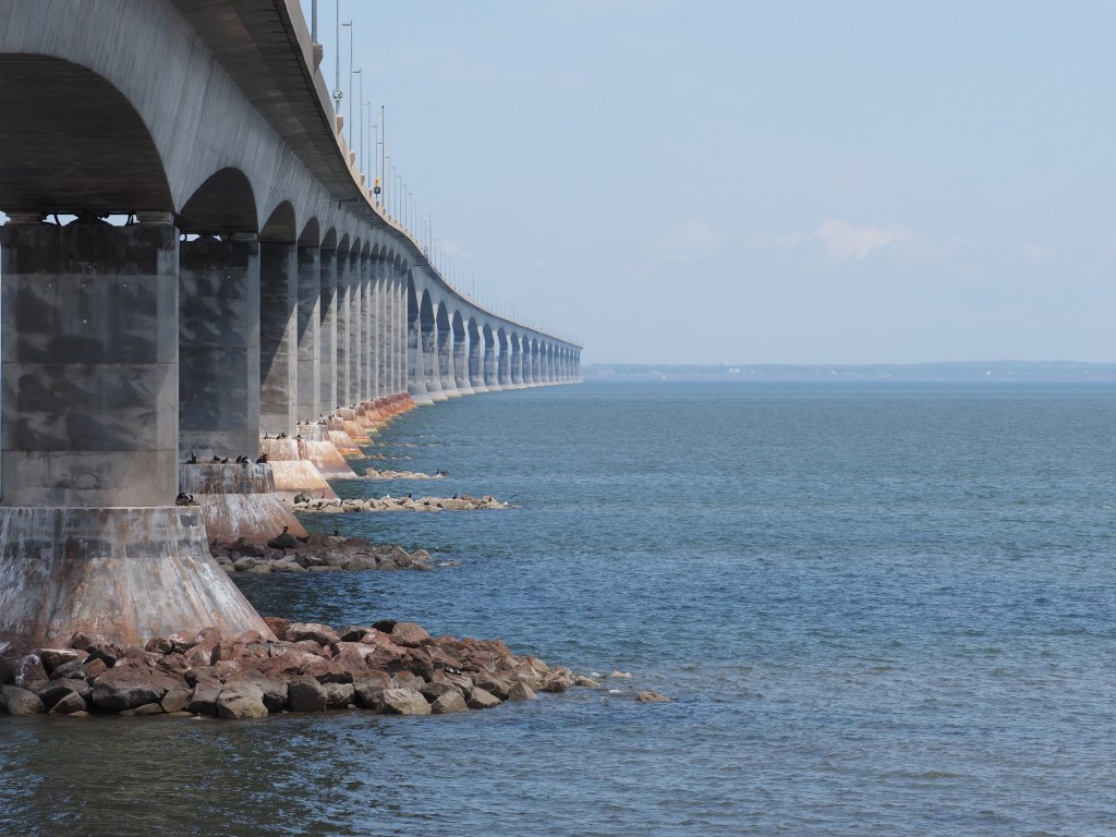 Once across the bridge we stopped to charge and have a celebratory beer in Borden-Carleton. PEI is our penultimate province to visit. Only Nfld is left on our list. The bridge crossing takes about 10 minutes and you don’t see too much until you are close to the PEI side.