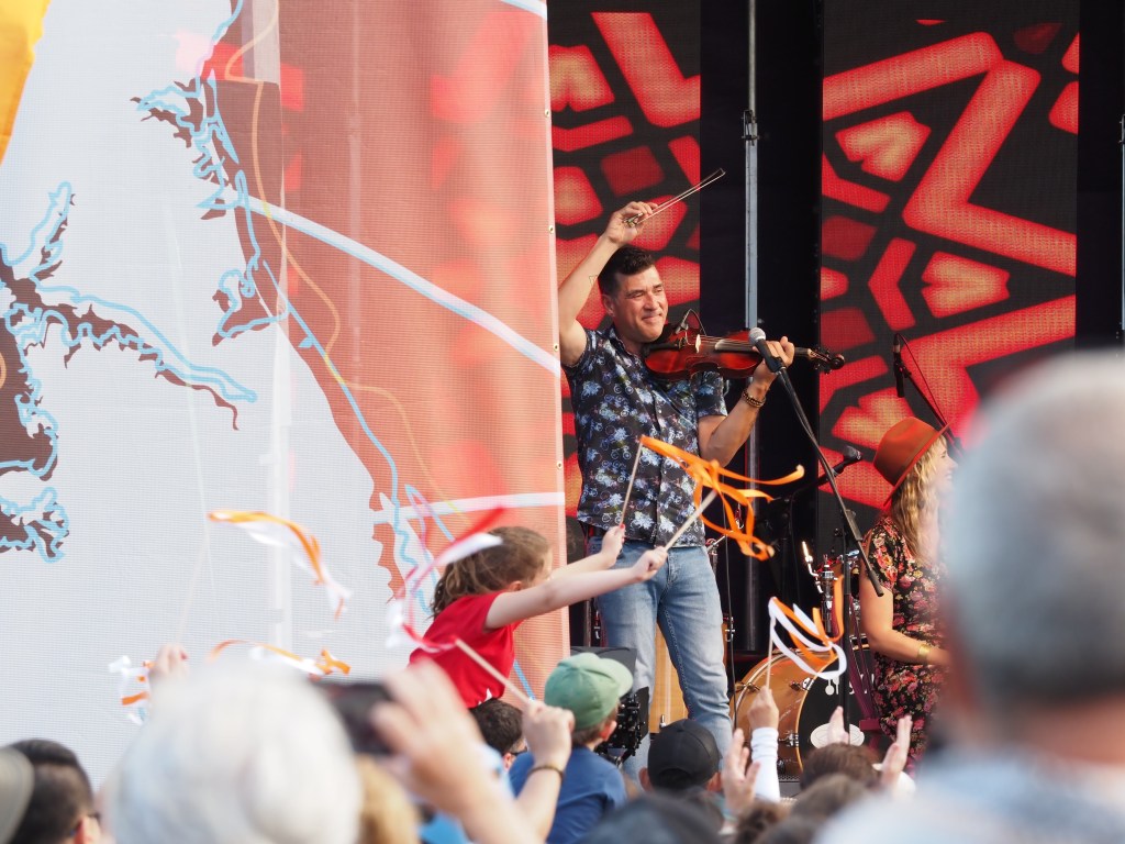 The party was downtown in Victoria Park. We encountered the food trucks first – two orders of fried clams and fries please!! We made our way over to the stage area and were treated to some great music. 6 Hearts were performing upbeat traditional music (Acadian and Celtic); they had the audience eating out of their palms of their hands.