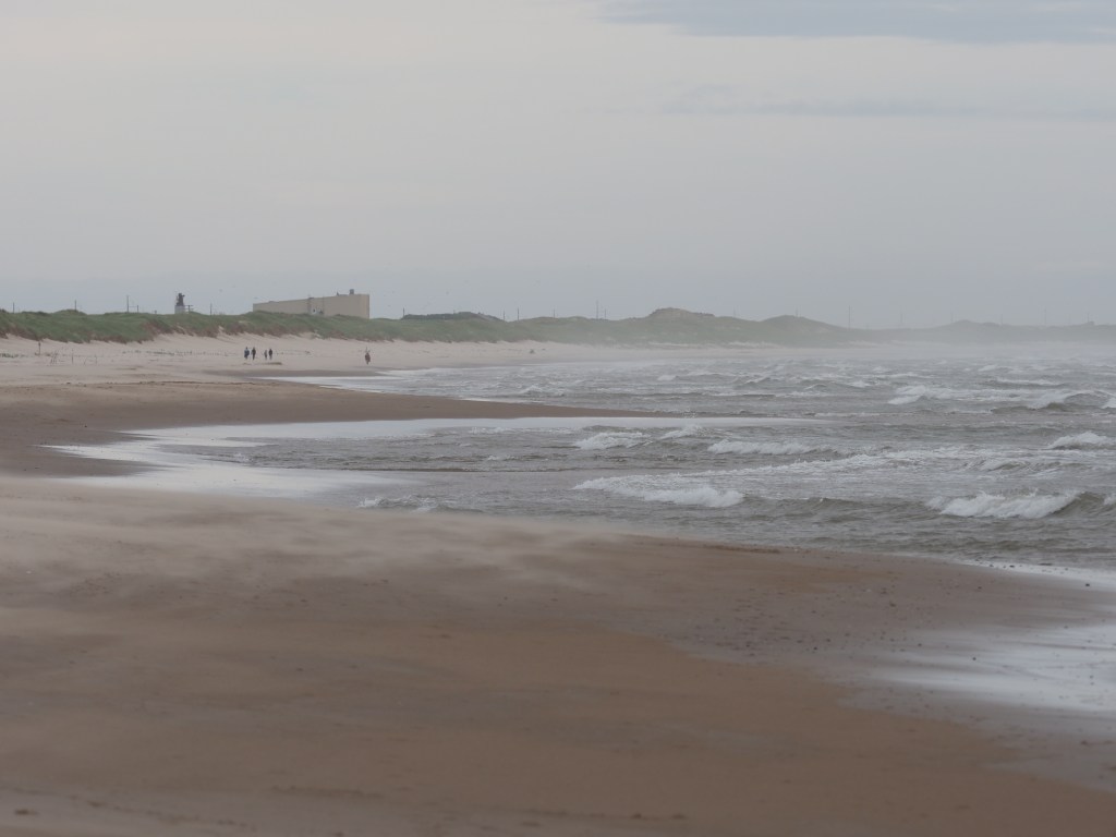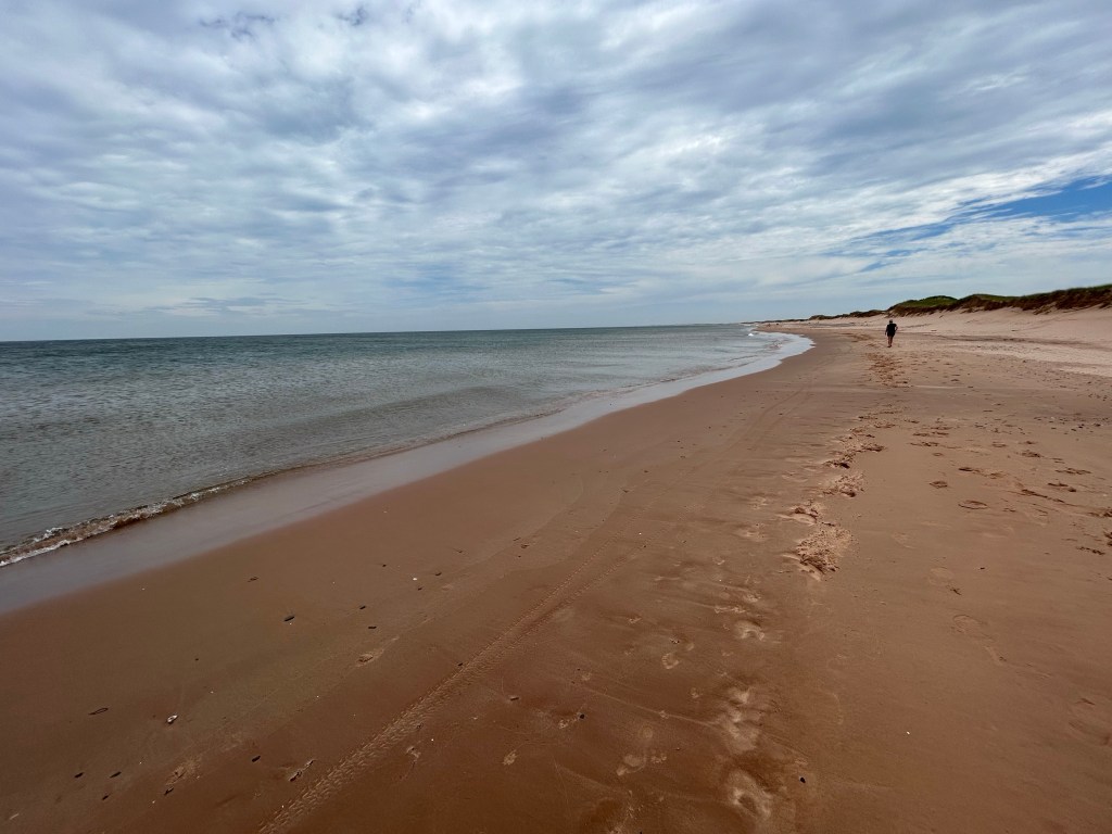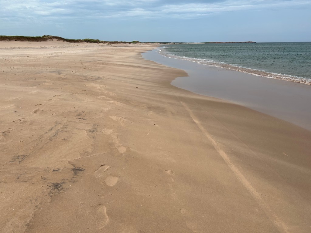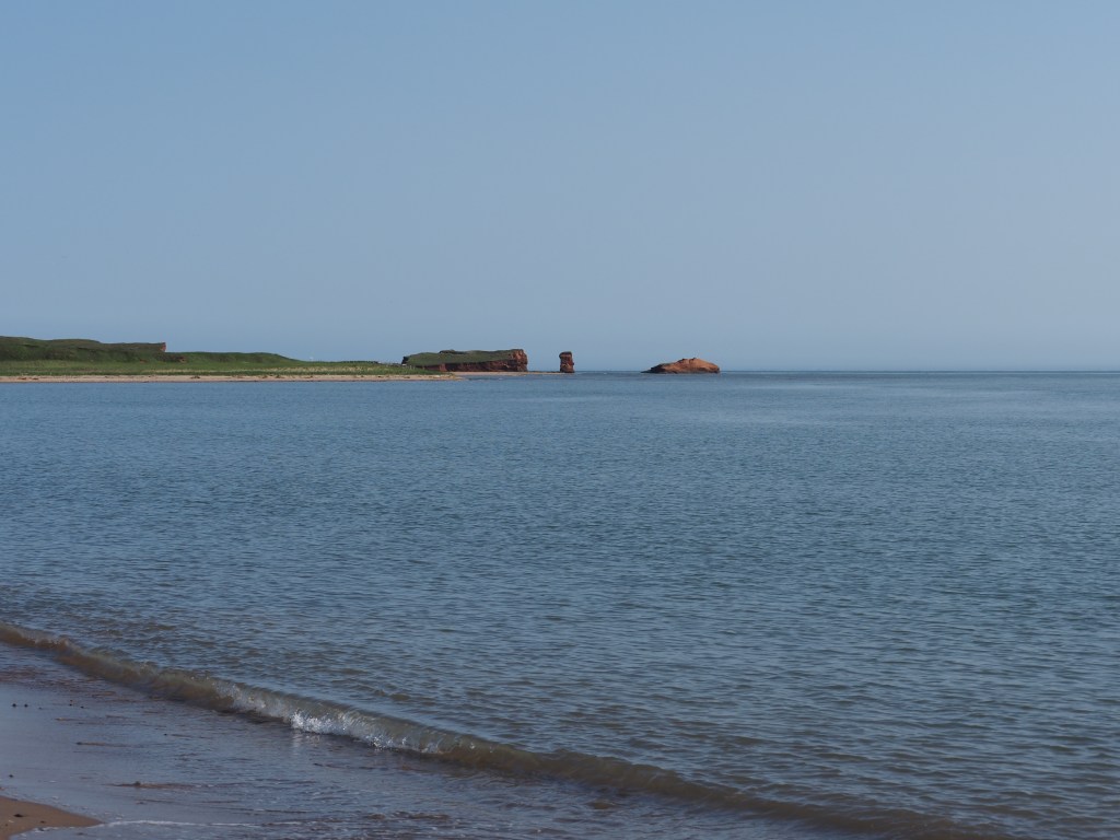 Our favourite beach – Plage du Havre – at the far south end of Havre-Aubert. The sand is perfect – like talcum powder, plus it squeaks with even the softest step. The water is shallow enough that you can wade out 300 metres or so. Water temperature was around 18 degrees, and goes up to 20 in August.