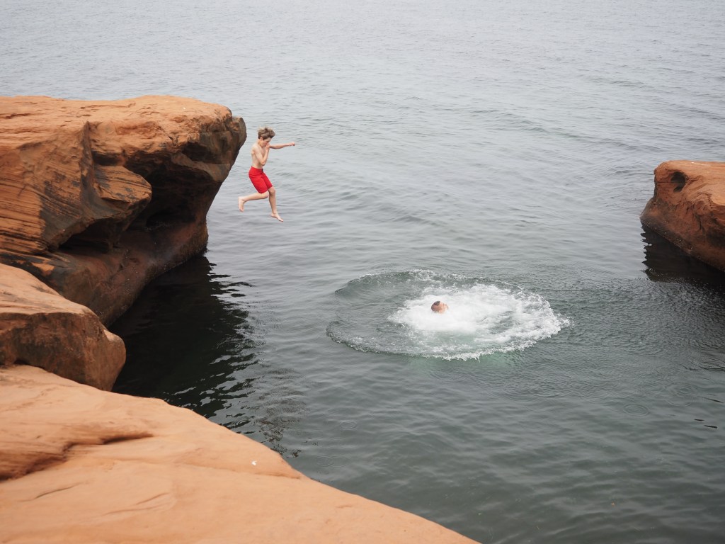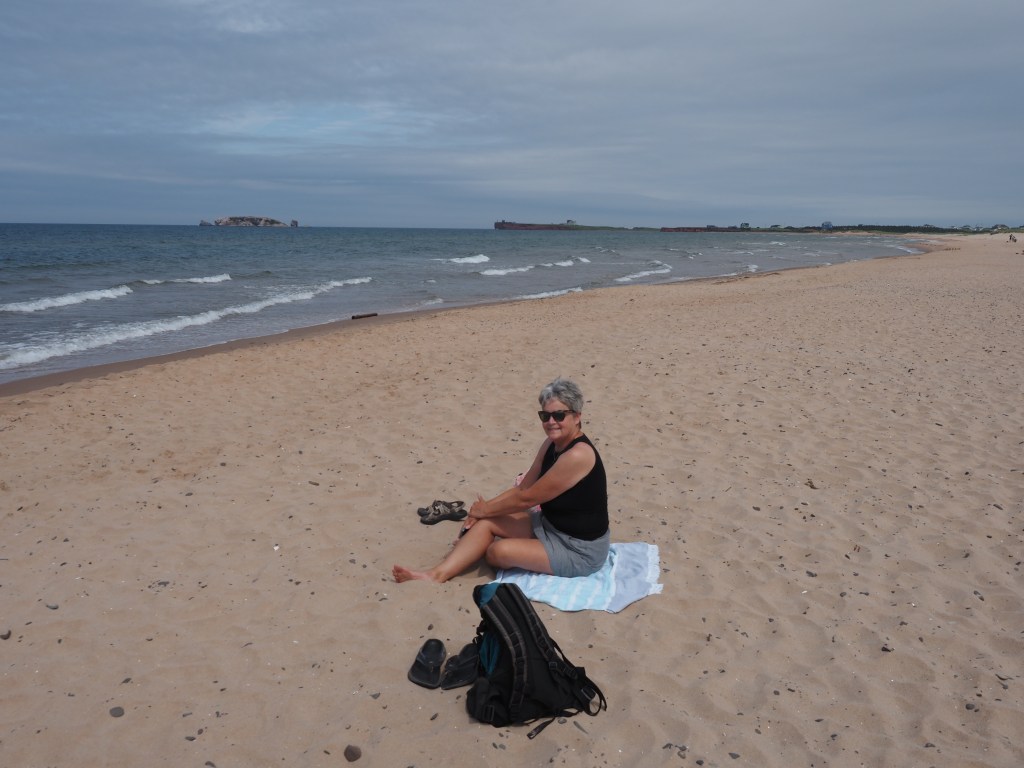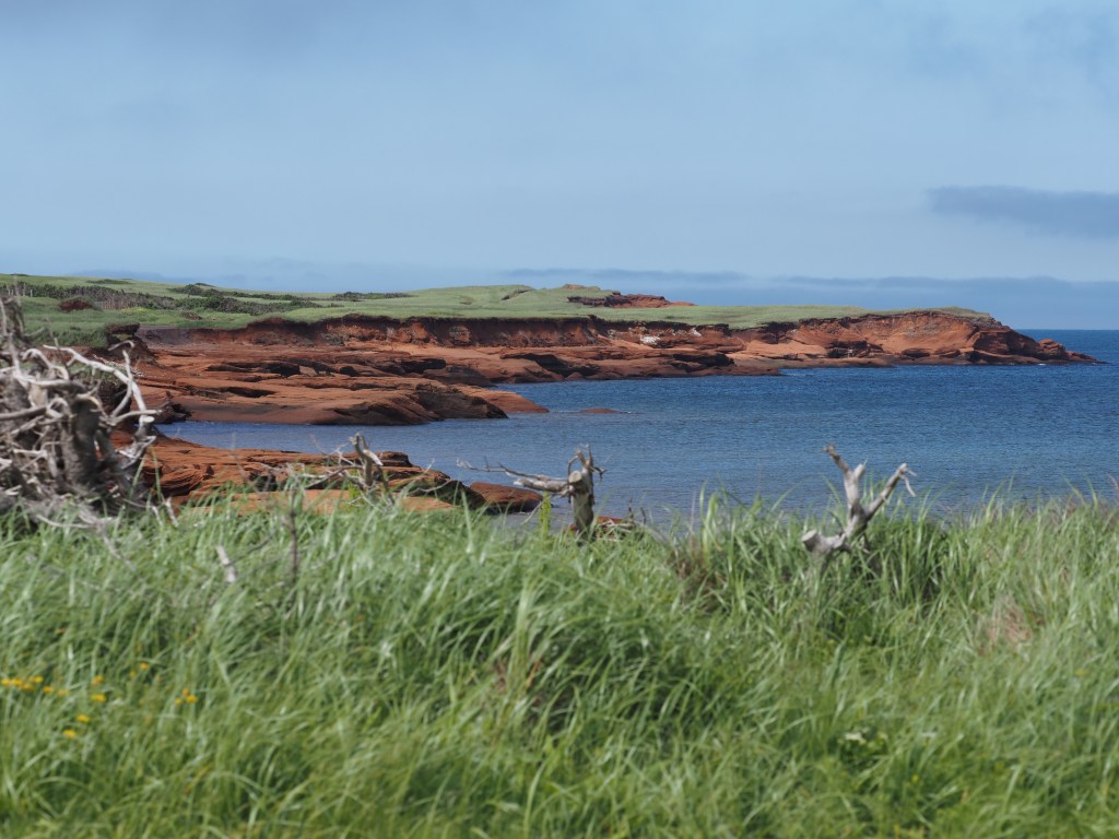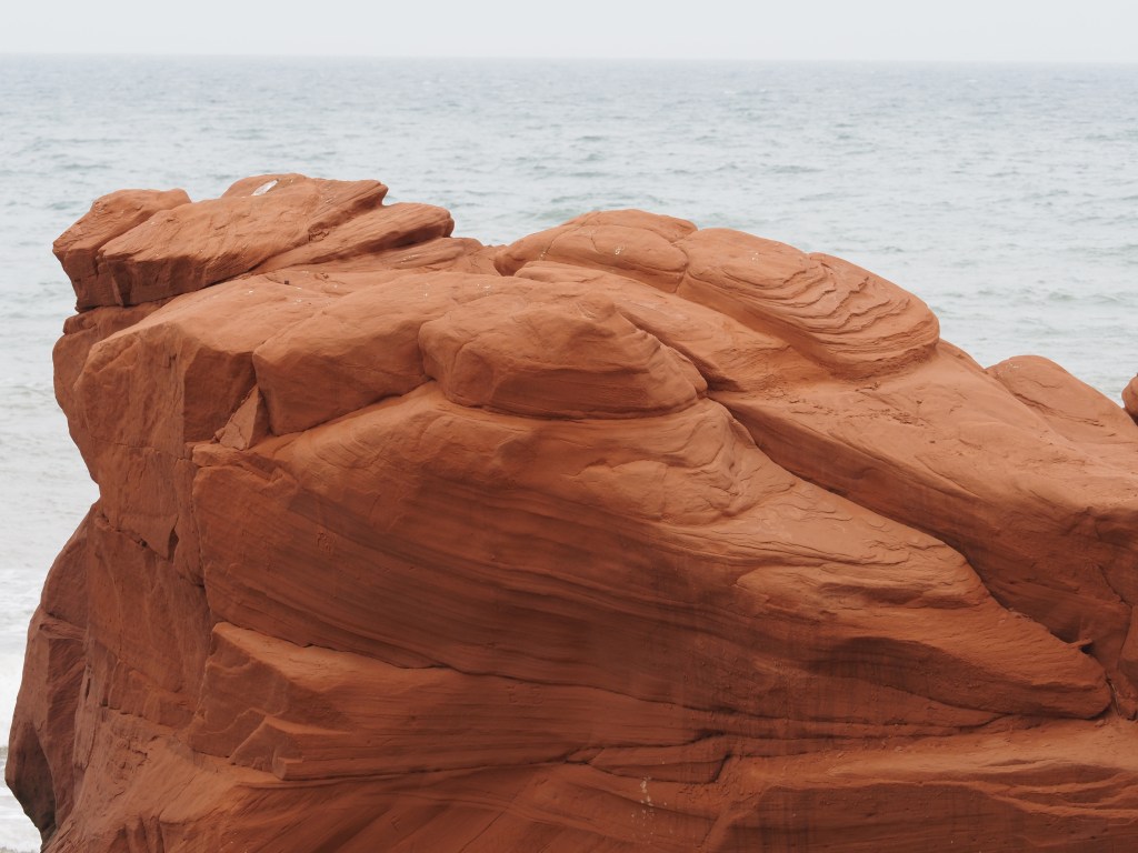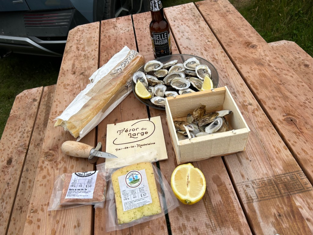 Our favourite beach – Plage du Havre – at the far south end of Havre-Aubert. The sand is perfect – like talcum powder, plus it squeaks with even the softest step. The water is shallow enough that you can wade out 300 metres or so. Water temperature was around 18 degrees, and goes up to 20 in August.