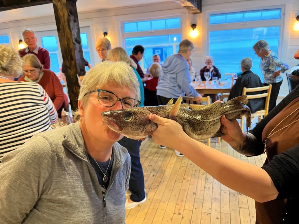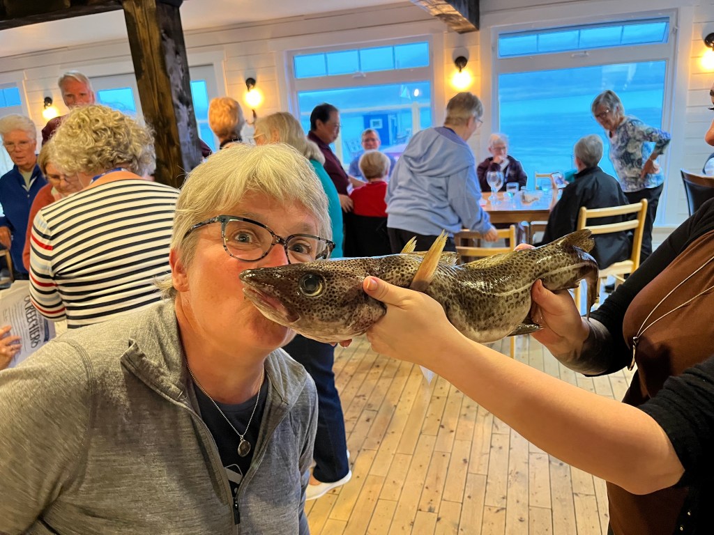 And the food was excellent too. We asked what was fresh, and the server said if we wanted something that was swimming that morning we should have the cod or the halibut. So we did, Val choosing the former, me the latter. Probably the nicest fish of the trip.