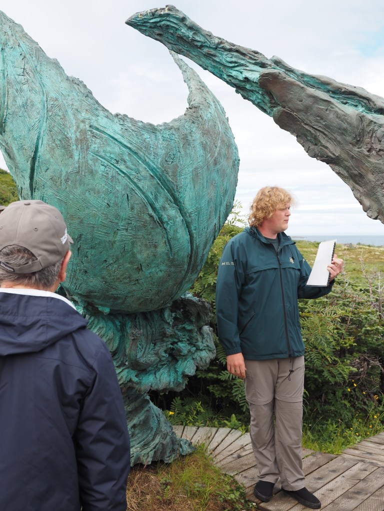 The next day we were off to L’Anse aux Meadows, where this gentleman, Noah, was our guide. Here we were spending some time learning about a bronze sculpture that was done by two artists, one Canadian and one Scandinavian, to commemorate the area which is now a unesco world heritage site.
