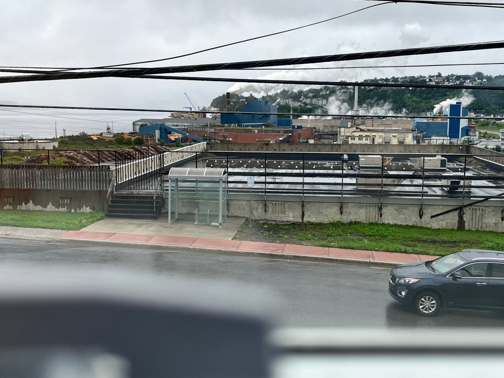 We may be putting the tent up in some drizzle so we get our courage up. We have a nice dinner at Boomstick Brewing. The steak is amazing and the beer flight is fun. The name of the brewery pays homage to the sticks that hold log booms together. These booms float down the river to the Corner Brook Pulp and Paper Mill ( a Kruger mill).