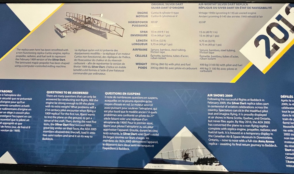 Aeronautics – Silver Dart – 1909 made it’s first successful flight in Canada at Baddeck