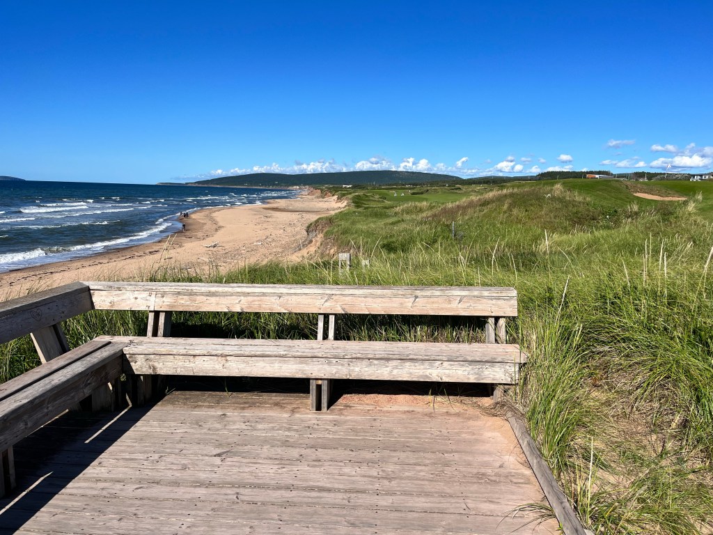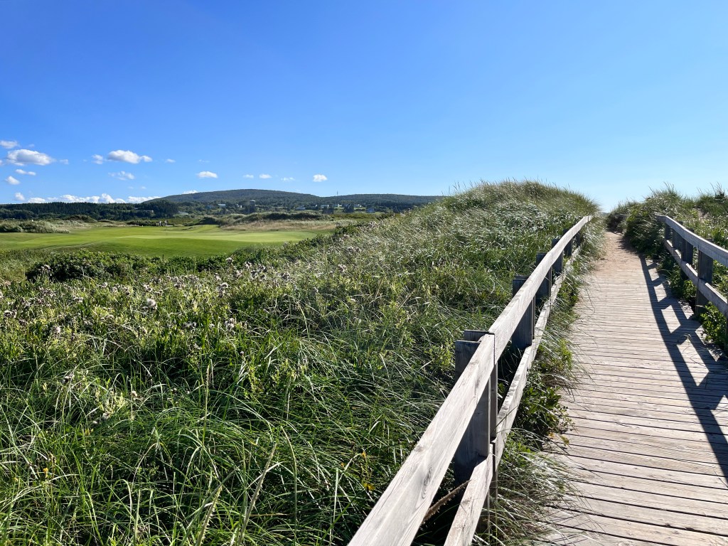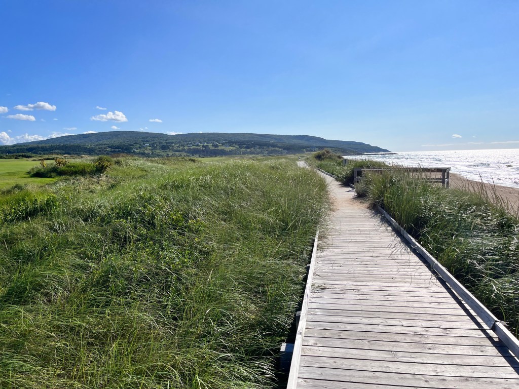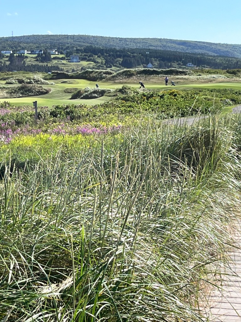 The next day, while Pat is off fishing on The Margaree, I take the afternoon to walk the beach and boardwalk at Inverness. There are wonderful vistas of the town and golf course. To think the golf course was once a coal mine – WOW!