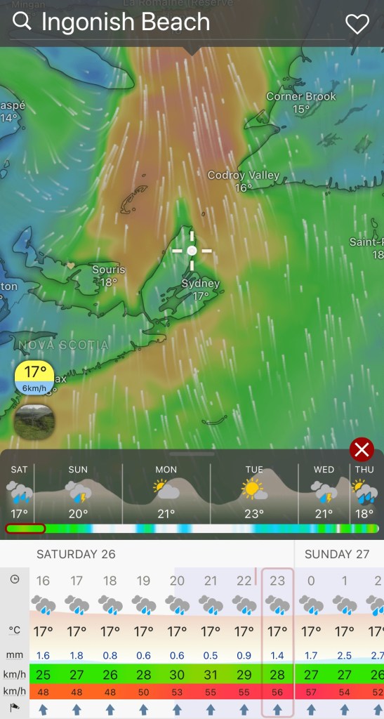 We take solace that the wet Maritimes summer has resulted in soggy trails. The Highlands Links golf course looks pretty soggy as well. We don’t really have the energy for a rainy hike. Neither of us like to golf in liquid sunshine either. A cuppa tea with a good book is more our speed this weekend.