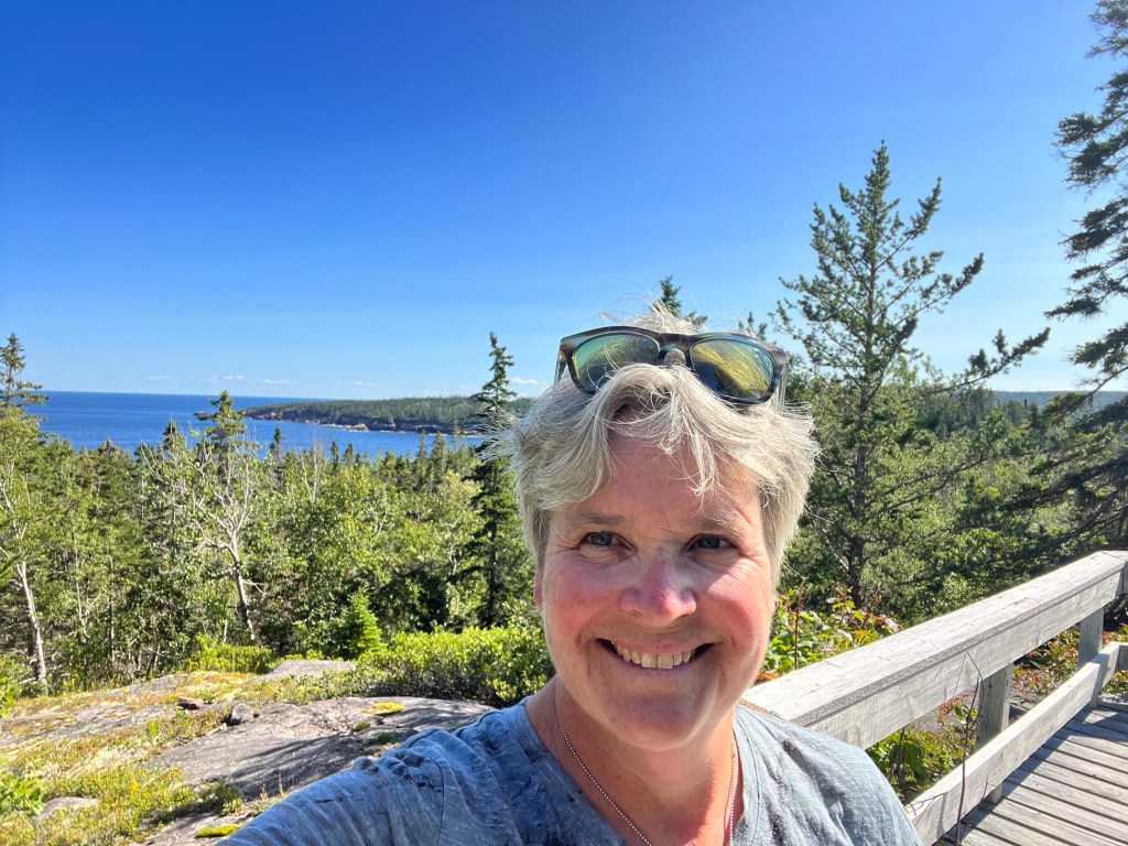 Oh but a funny thing happened on the way to the falls. I am distracted and take the wrong trail. I end up on the Jack Pine Trail. Here is my selfie to prove it! It is lovely and fairly short (2 km). And I learn it is unusual that jack pines are anywhere near here.