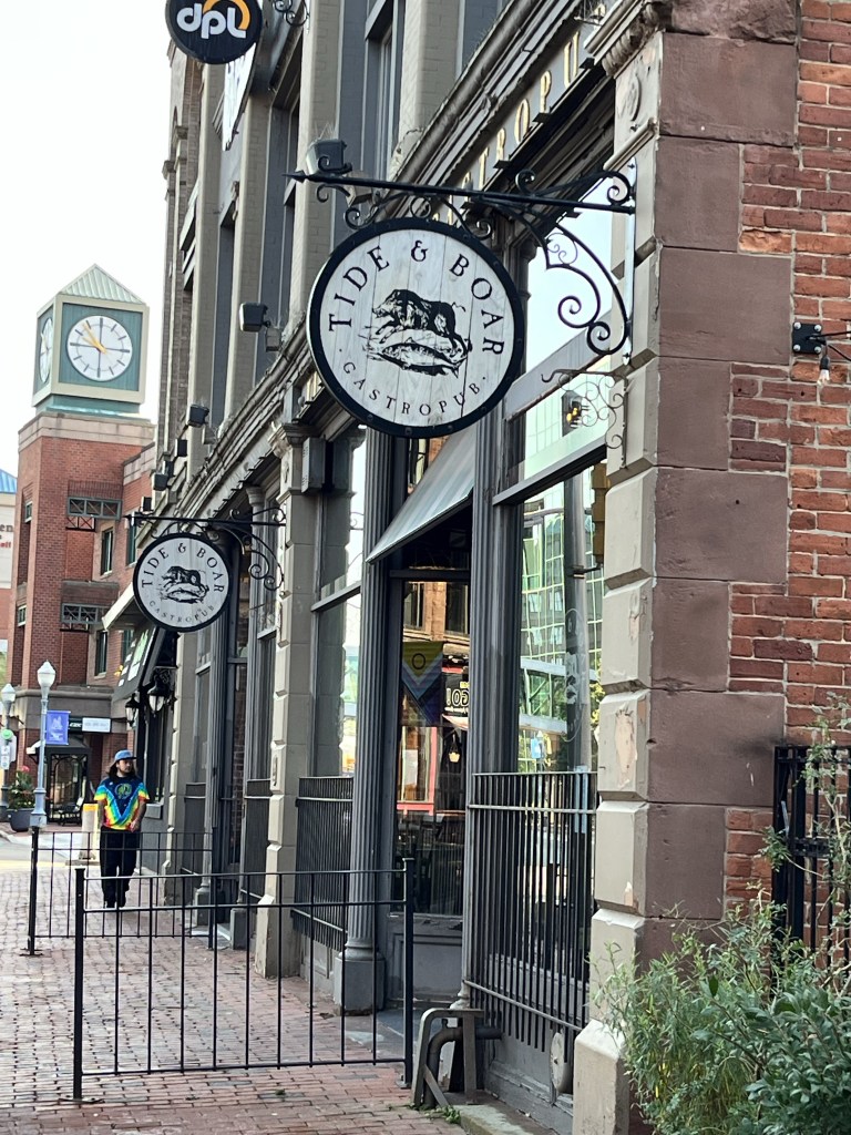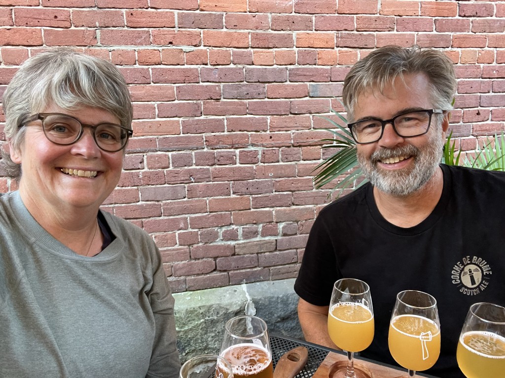 It is raining and windy so while recharging at Moncton’s downtown charger we duck into the nearest pub for lunch.