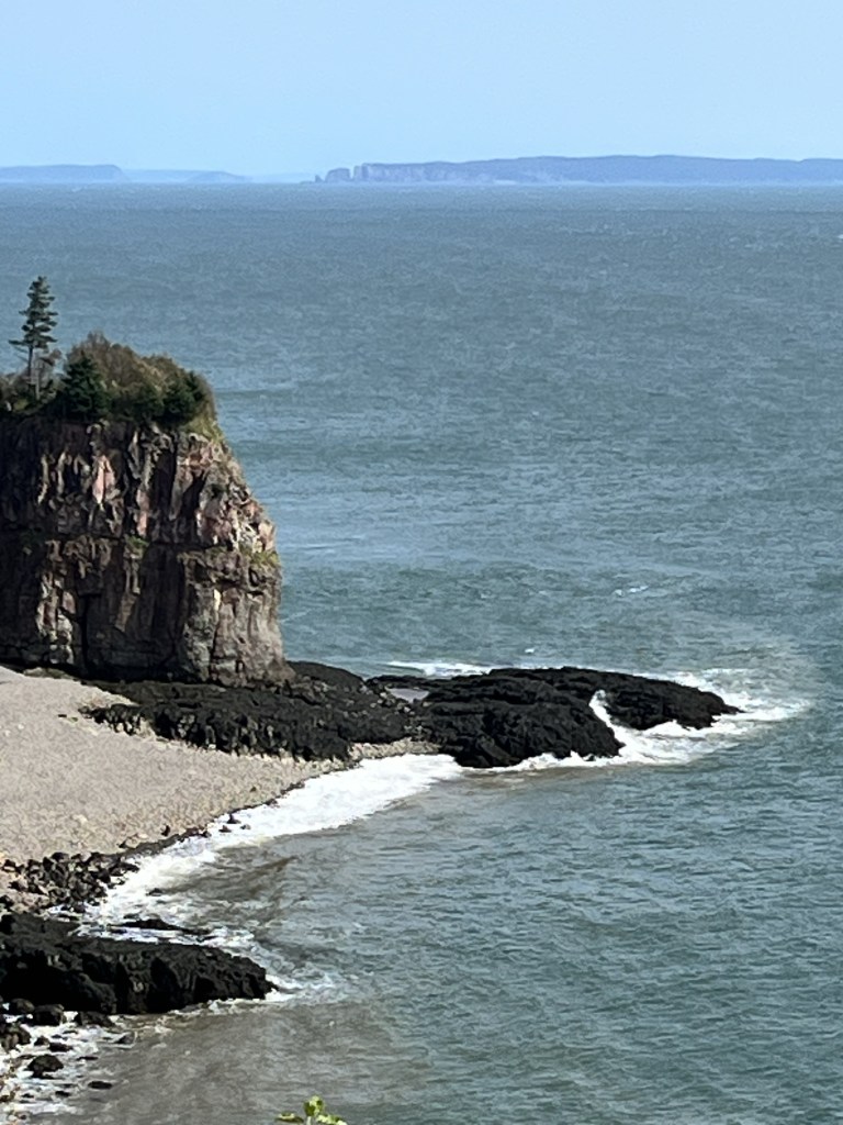 In the middle background is Cape Split. Hiking Cape Split is high on the list of must dos, but the wet summer has made the trail unappealing (another Nova Scotia trail on the ‘for next trip’ list). So this view is the best we can do on this trip 🤷♀️.