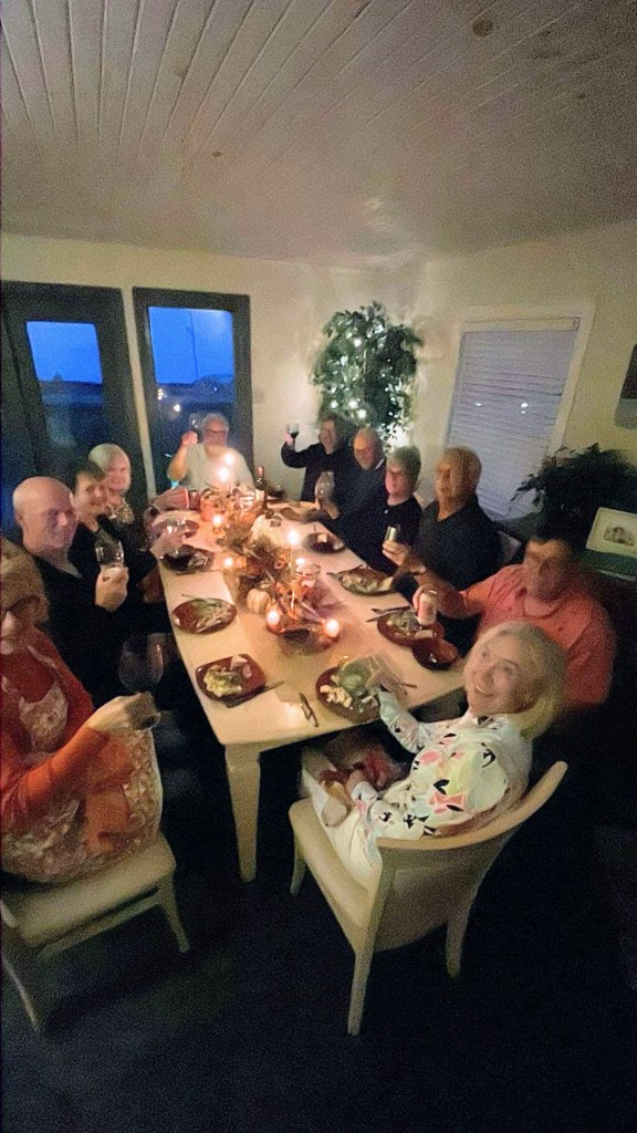 This is a Friday tradition. Rather than the regular beach gathering we are invited to dinner at neighbours – Dave and Cindy. This group have been coming to Cottage Cove for many years and have many stories to share.