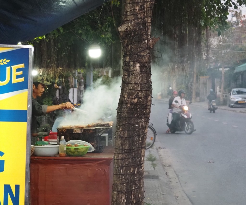 Our homestay has bicycles and we are looking forward to a day at the beach. After pumping up the tires we head to An Bang Beach. Getting there is half the fun. The bikes are one speeds and a little past their prime. Thankfully roads are flat and the traffic is manageable. There are bike parking lots. We are flagged down by a fellow who will watch our bike for free as long as we get a drink from the family restaurant across the street.