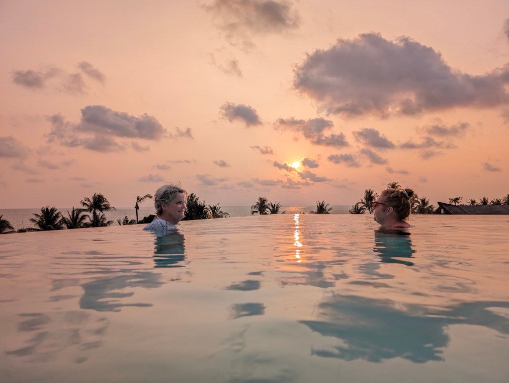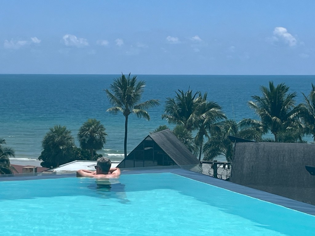 Then it’s a short tuk tuk to the hotel. YAHOO! After checking in we find the family enjoying the roof top infinity pool.