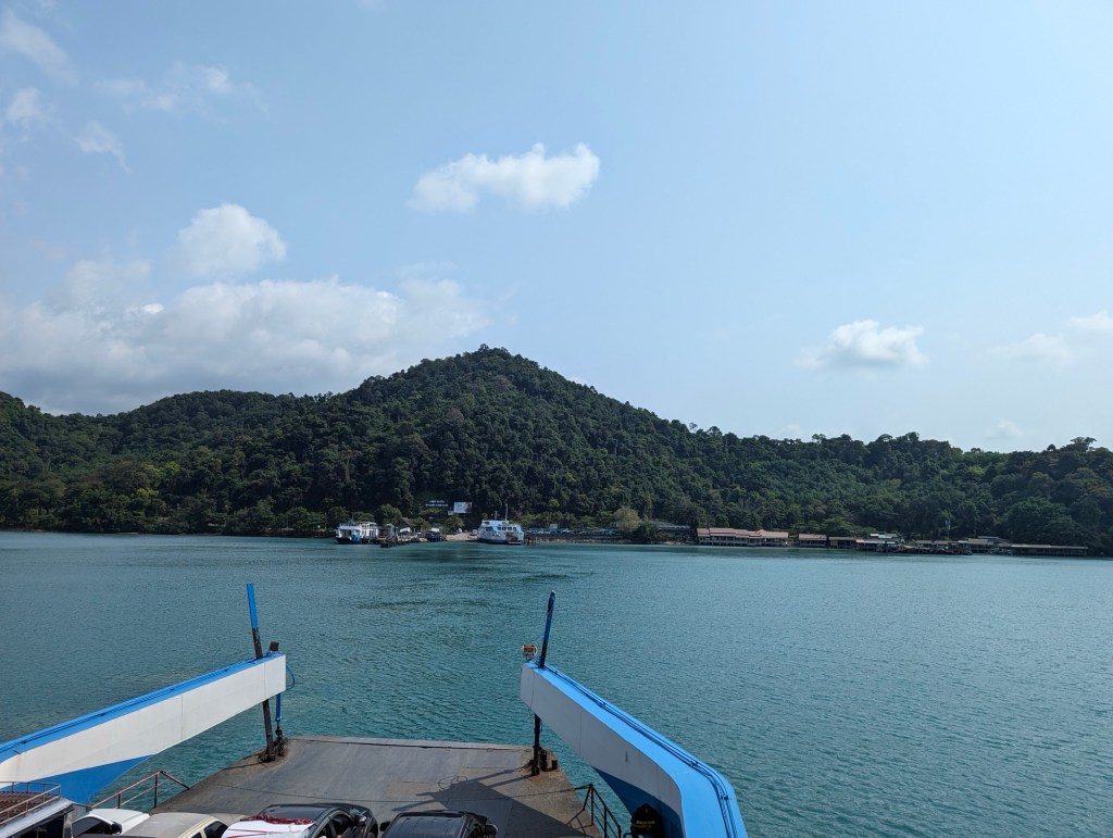 After walking across the border, we transfer to another van that takes us FINALLY to the Koh Chang ferry. (This is where we thought we were taking an island hoping ferry instead of a van/short ferry. Oh well.) We walk on and treat ourselves to a fruit smoothie.
