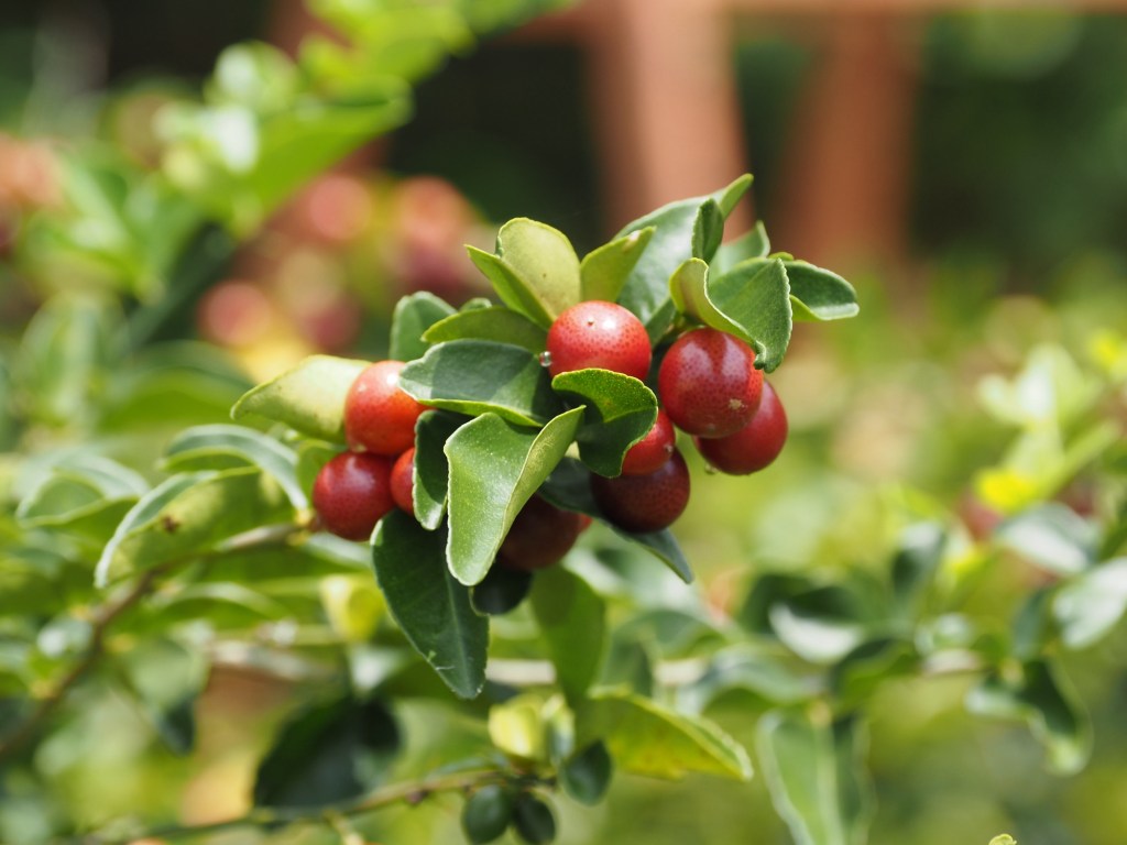 Of interest, those red berries are miracle berries. Why? After eating the berry pulp, which is a bit sour, we pop a different fruit, even lemons, into our mouths and Wow!! that fruit is so much sweeter. It is a before and after exercise. These berries are being developed as a very healthy sweetener and aid to fight diseases like diabetes.