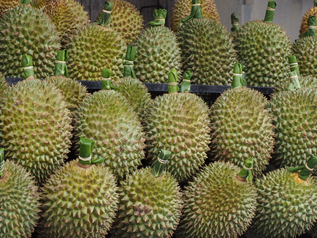 In our travels we come to Armenian Street where we try durian at Durian Baby. In this version, the fruit is dipped in a charcoal (?) sprinkle to preserve the fruit and contain the pungent smell. By the way, all hotels in Malaysia outlaw durian because of its odour. Mainland Chinese visitors (biggest tourist market) come to Penang especially for fresh durian in May and June. WHO knew.