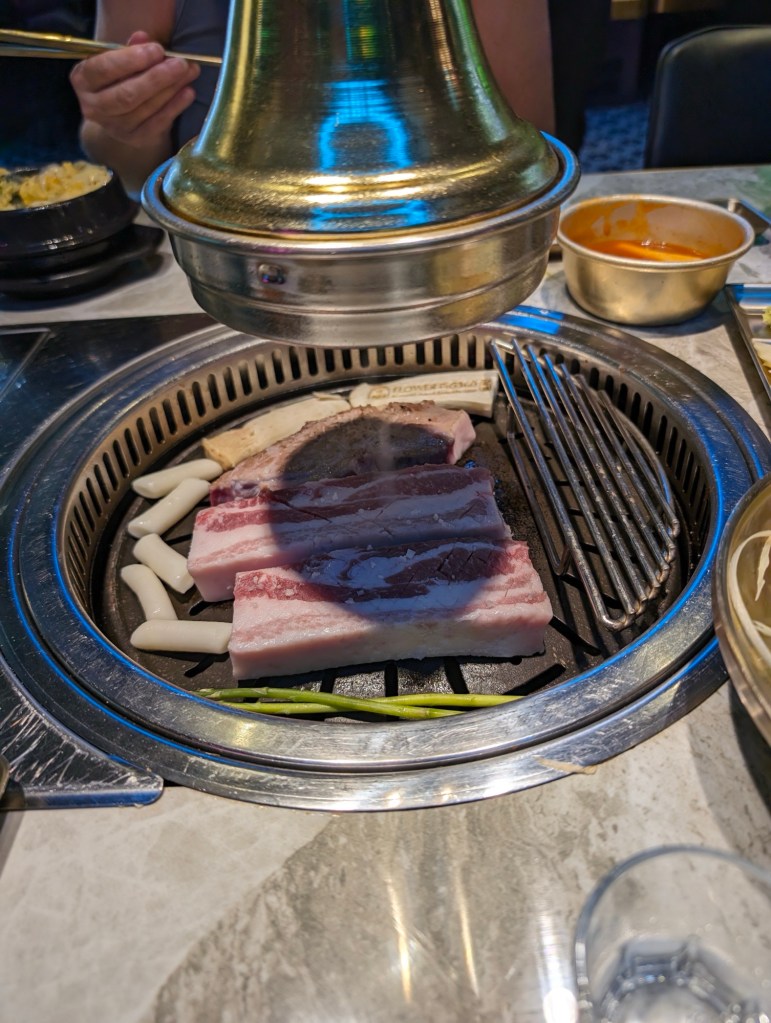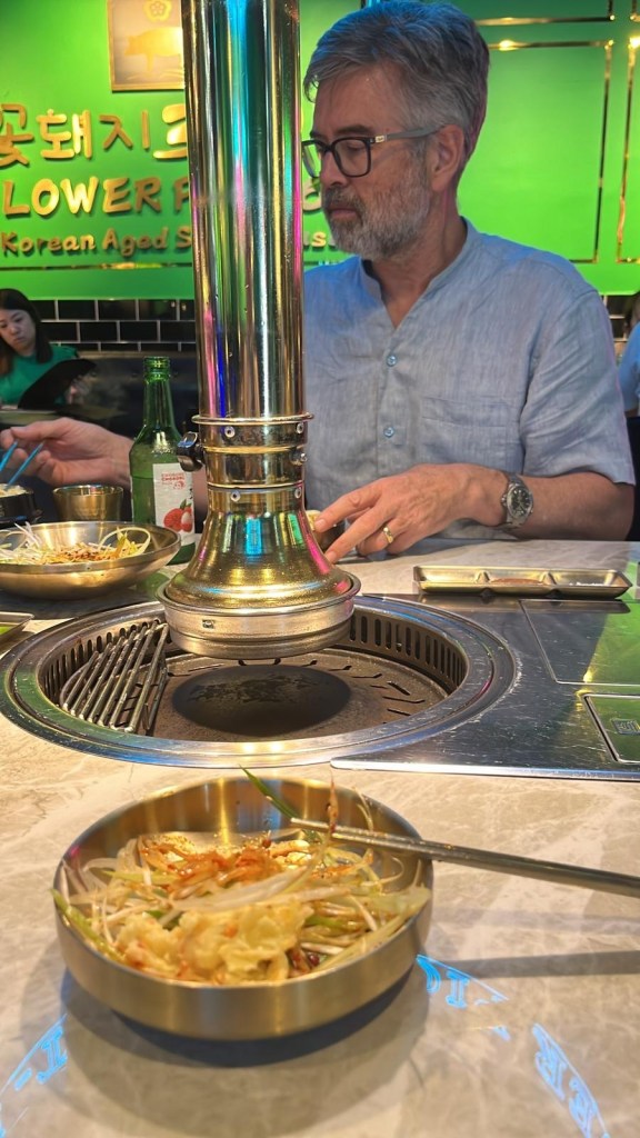 Our location is terrific. After checking in, we hit the street in search of dinner. It is approaching midnight and still lots of energy on the street (Saturday night). Close by we find Korean Bbq! This place closes at 5am. Great people watching too.