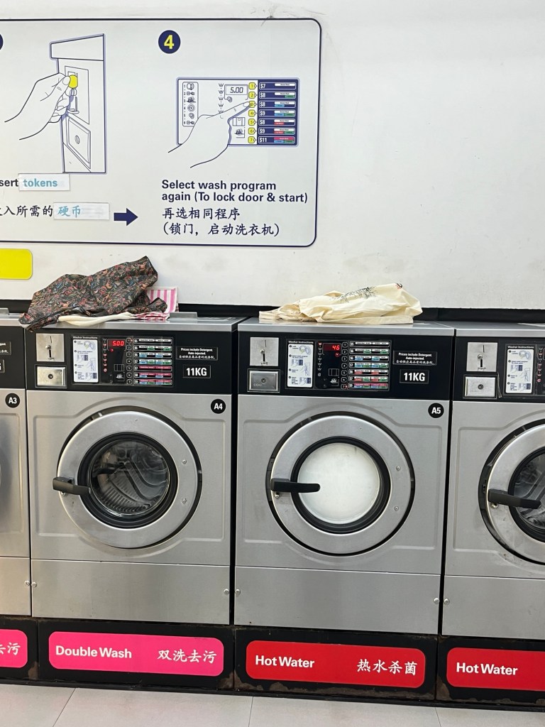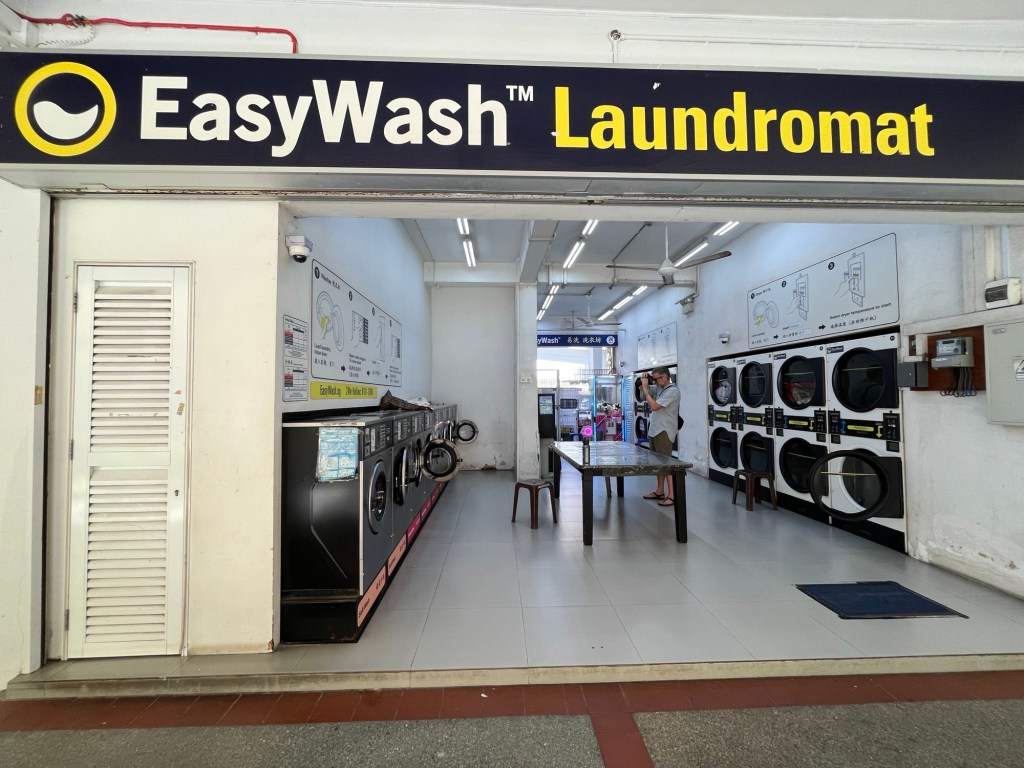 We are intrigued by Singapore’s laundromats. Walking around we pass by many small open air laundromats. The concept makes so much sense. We do some laundry and check it out.