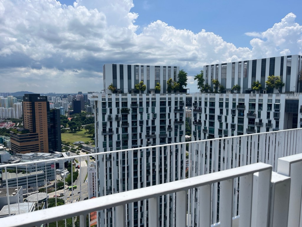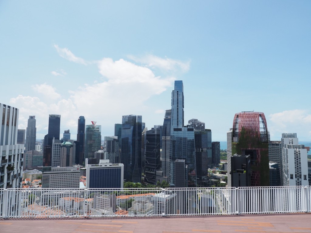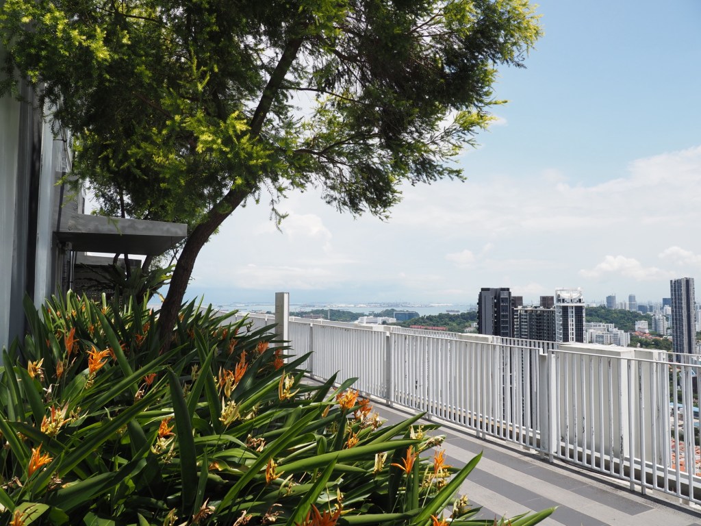 Each day we look up at the seven high rises comprising The Pinnacle @ Duxton. Turns out for $6 you can take the elevator to the 50th floor Skybridge and get a magnificent view of Singapore.