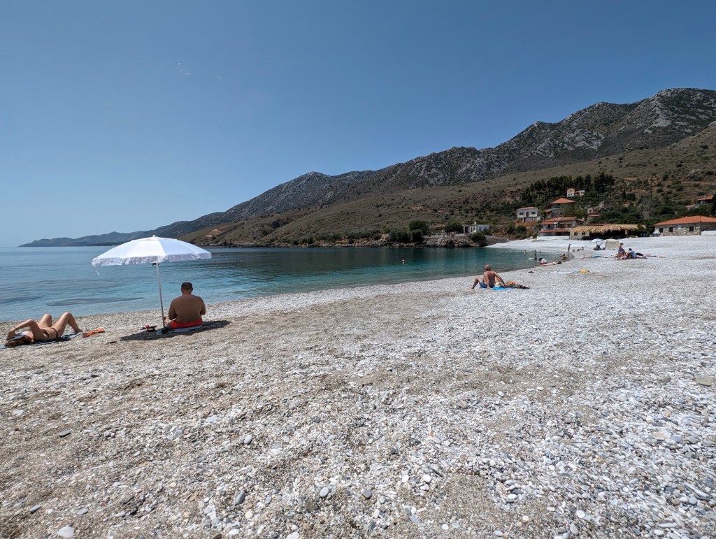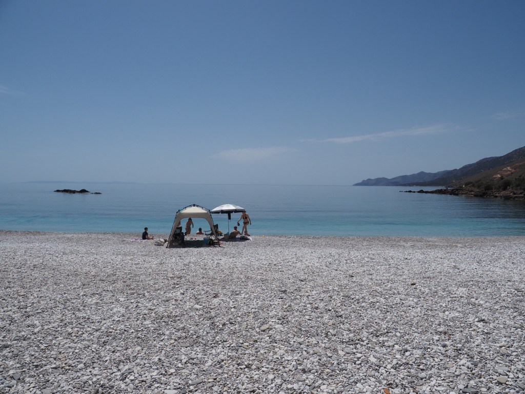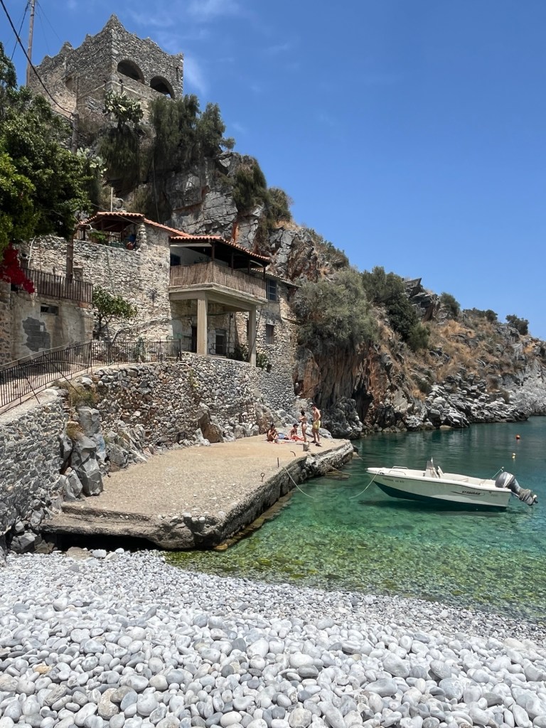 Again it is almost eerily quiet except for about 10 people hanging out at the beach in small groups. The tiny town / harbour / beach are one and the same. In that respect it is unique. To be honest the beach is much rockier here (coming from Batha) and we just had a great swim. We thought of getting a bite to eat but no eateries are open. Still, it is a stunning village.
