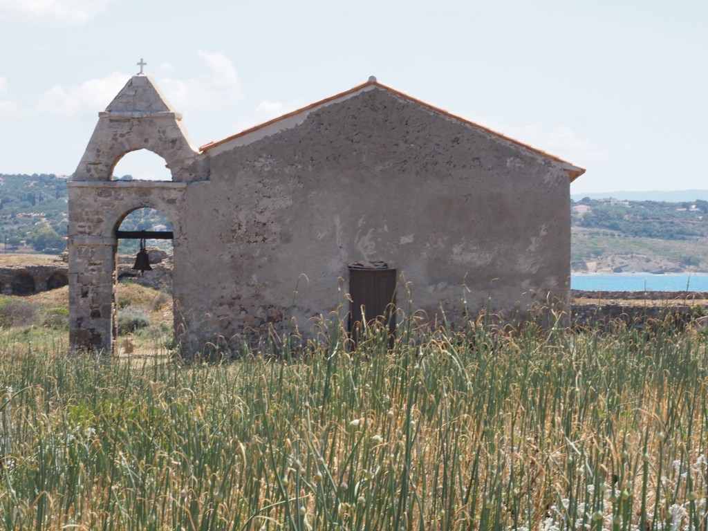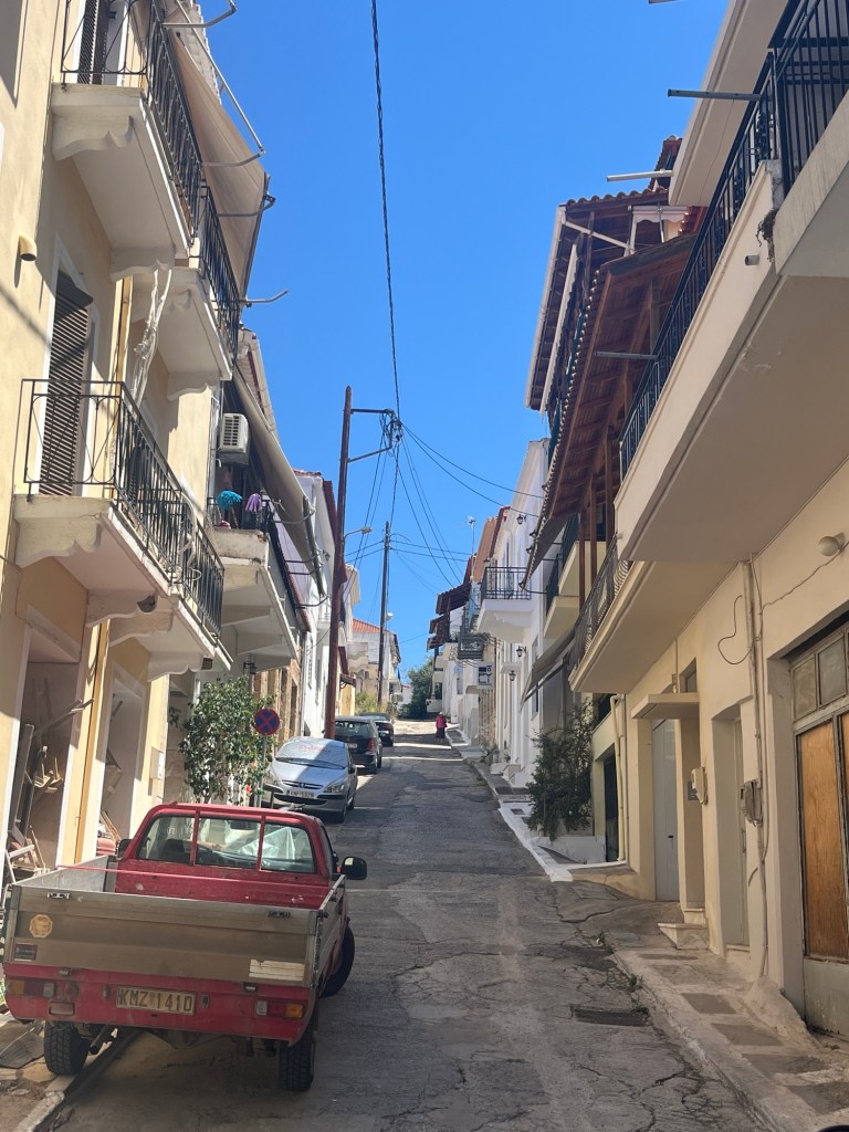 On the other side of this hill (far left) is the Port of Koroni and at lands end is Koroni’s Castle. Because of the hilly topography and narrow / often one way streets, our destination is 500 meters away as the crow flies and 6 kilometres by car.