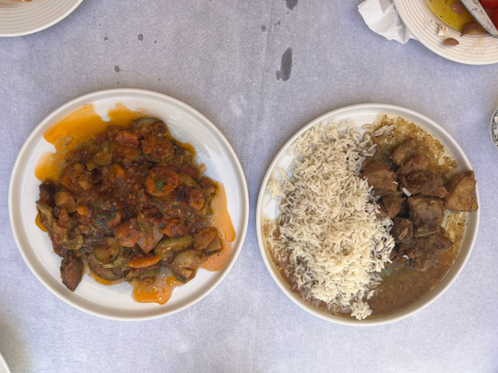 For our second lunch trip we have traditional Greek salad, imam (eggplant) and braised pork spareribs.