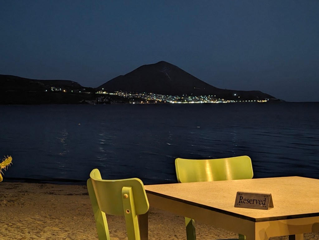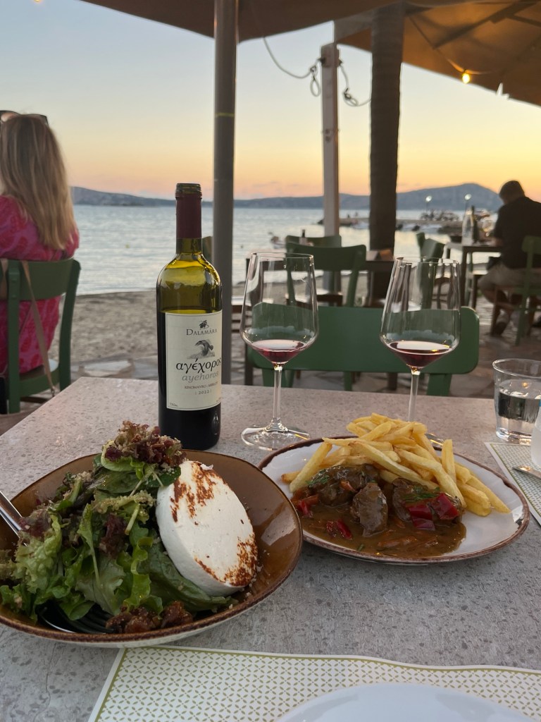 The next evening we stop in Gialova for dinner after a restful afternoon at the beach. Gialova is a popular tourist haunt and close by a number of nice resorts.