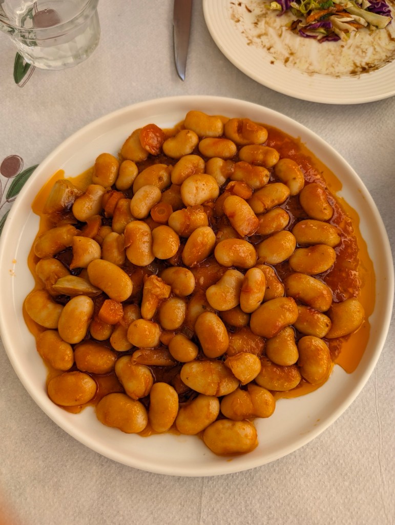 Fava is a favourite. We are looking forward to making it at home. Red onion, capers and olives add flavour and crunch to the ground yellow peas. The best versions come with a healthy helping of olive oil to mix in. Nikos’ version didn’t but it still tastes pretty darn good.