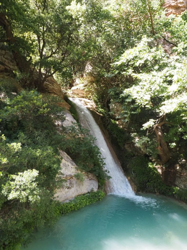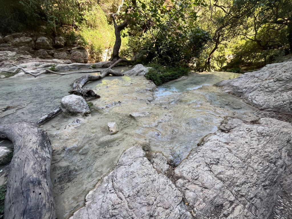 After lunch, we used the hiking app Alltrails to find the Neda Falls trailhead. It’s essentially the beginning of a very rough section of road a few km from the actual trailhead. We talked to a couple that had driven it in a similar car, but I didn’t want to chance it. We had actually bottomed out right in the middle of the town above the trailhead, and we were trying to be careful with the rental car.