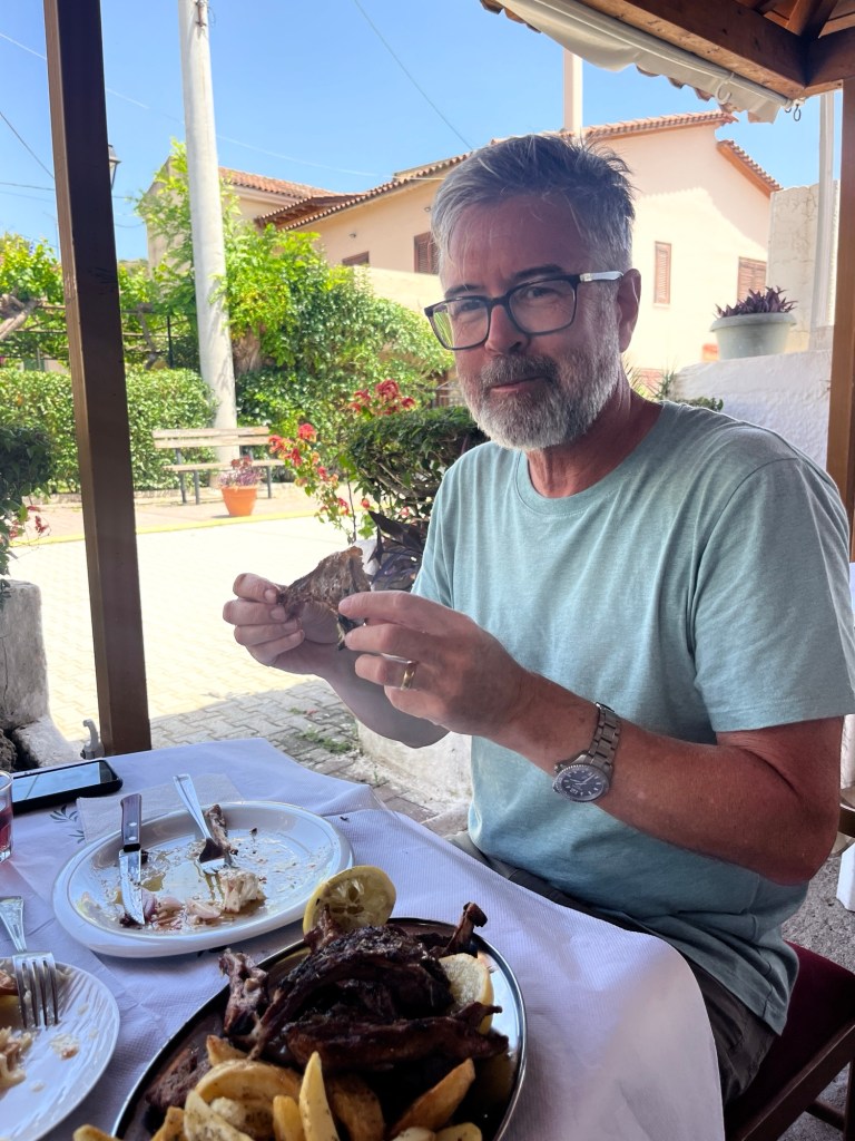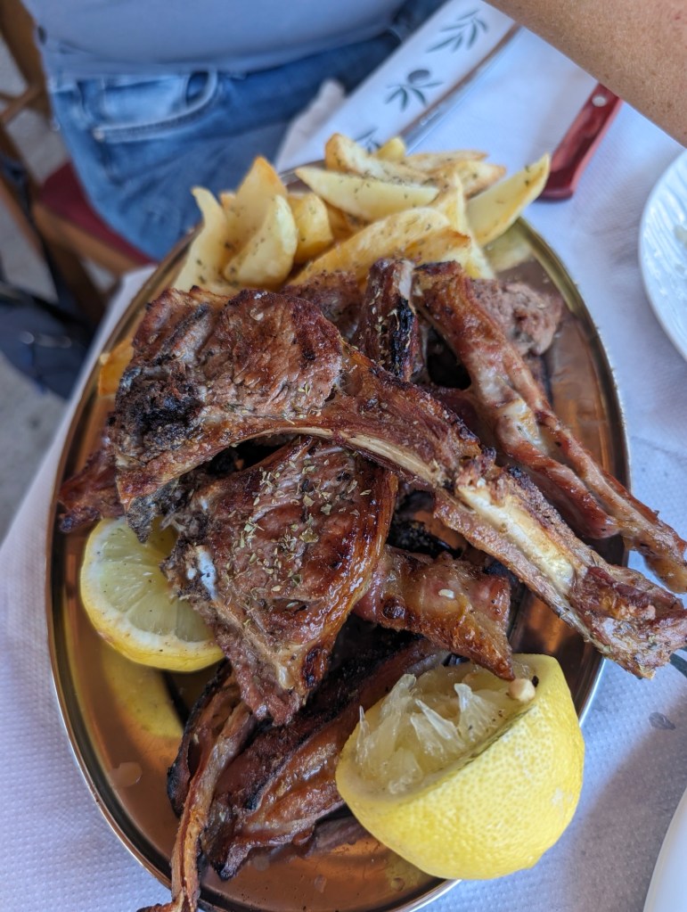 We share the restaurant with another couple. They live and work in Athens and come to nearby Patras on the weekends to enjoy the countryside at their second house (passed down from a relative). We have a great conversation with them – she grew up in Montreal and moved back to Greece in her early 20s.