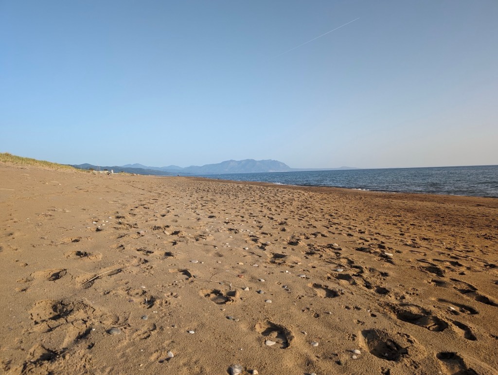 Our last stop is Kokomo Beach, just down the road from our hotel in Kakovatos. The beach is deserted.